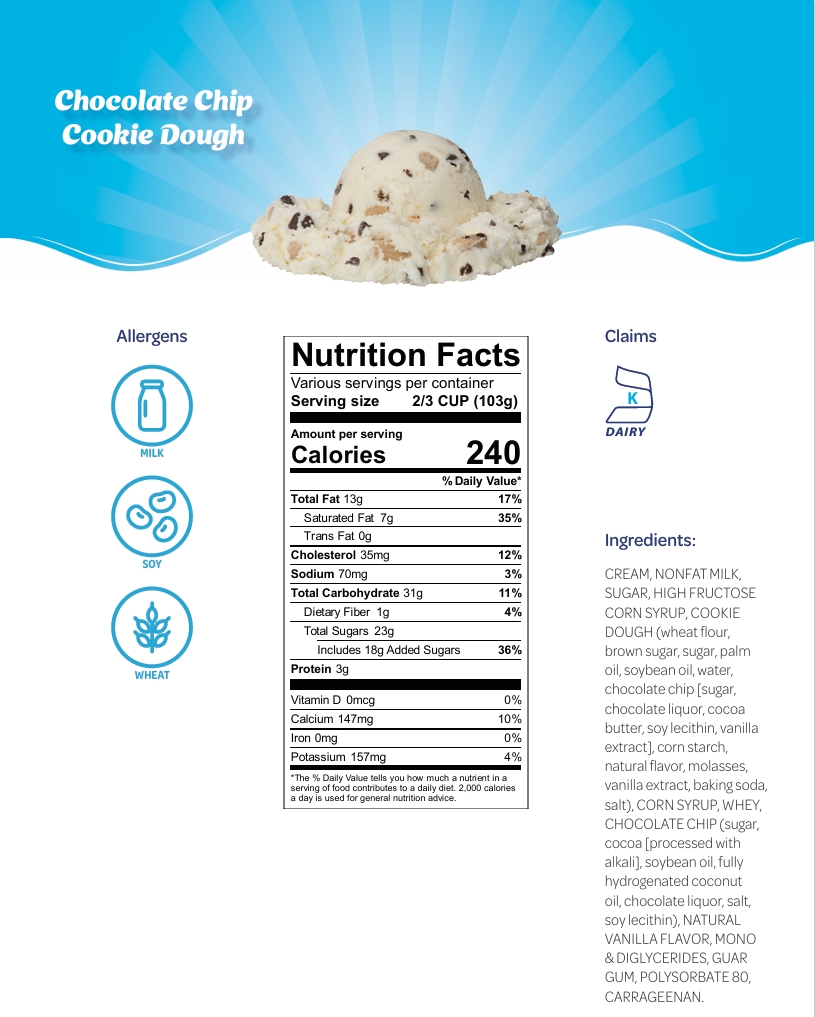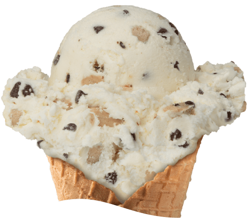 Vanilla ice cream with chocolate chips and chunks of delicious cookie dough throughout.