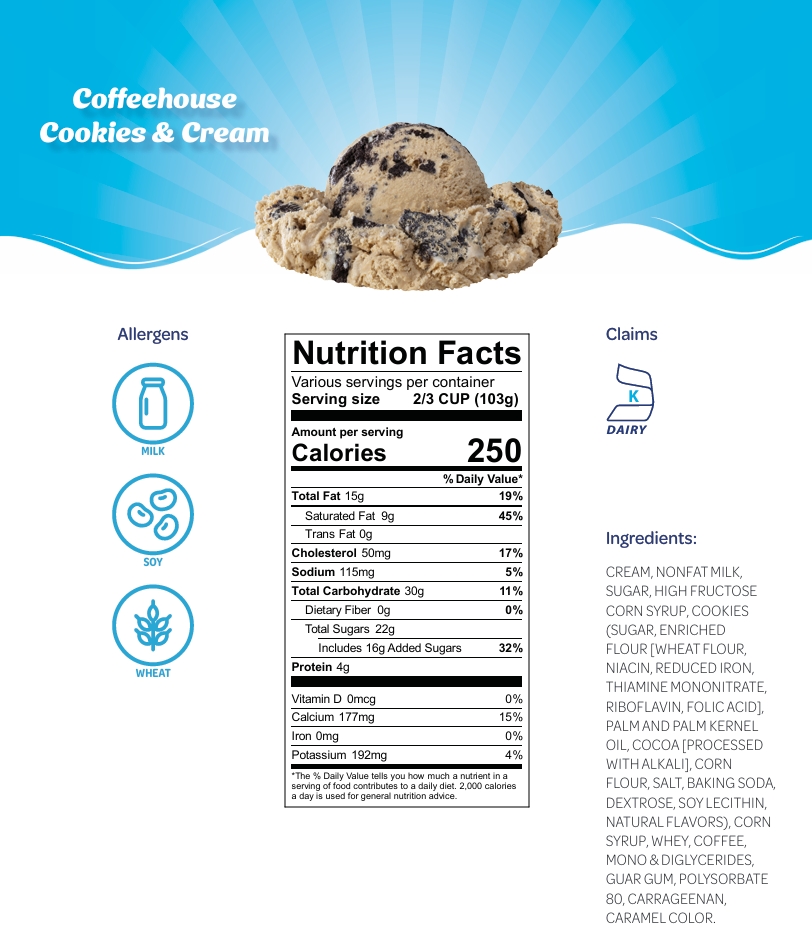 Our delicious coffee ice cream loaded with cream filled chocolate cookie pieces!