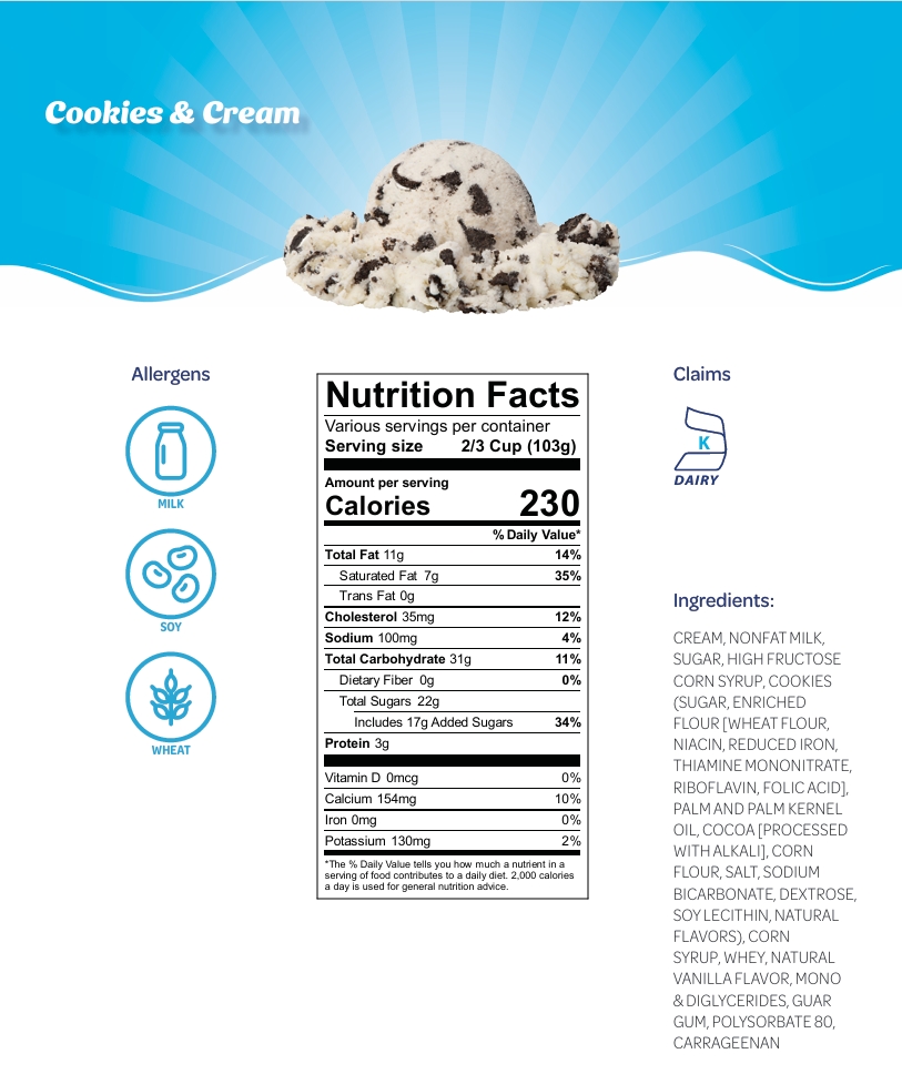 Vanilla ice cream with delicious cream filled cookie chunks.