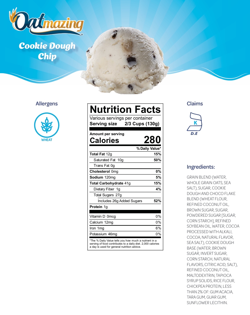 Cookie dough with chocolate chips throughout a cookie dough flavored oat based non-dairy dessert.