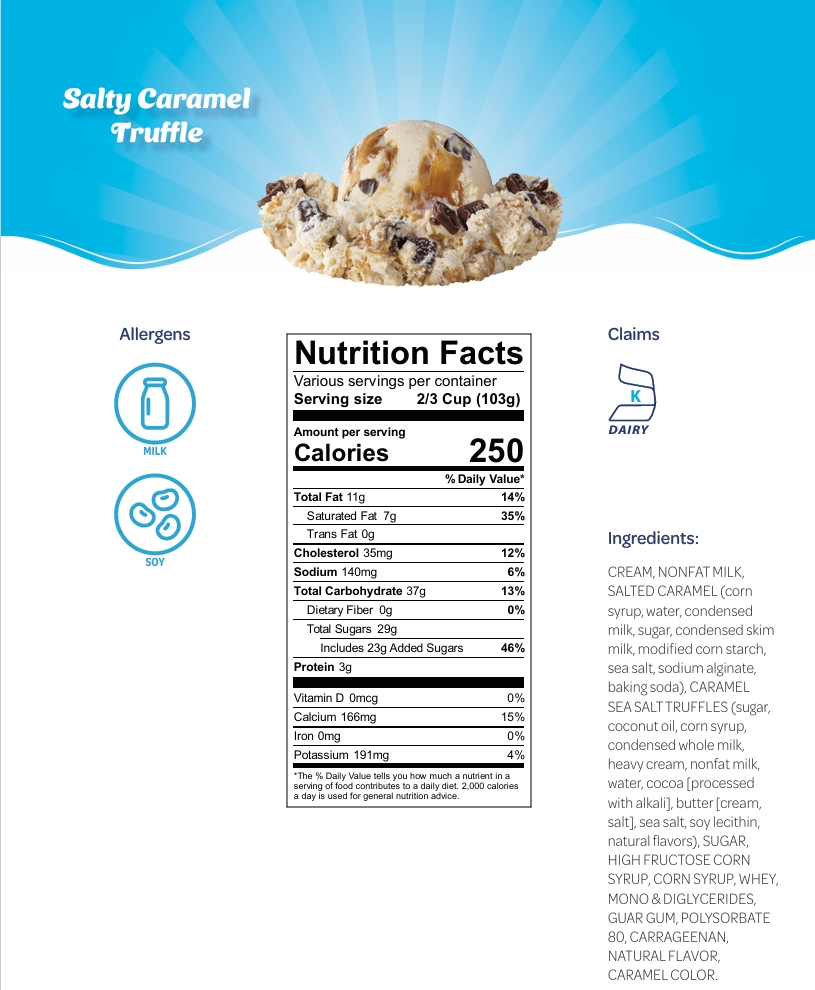 Sweet & salty caramel sauce is swirled into creamy caramel ice cream and packed with tasty chocolate caramel truffles.